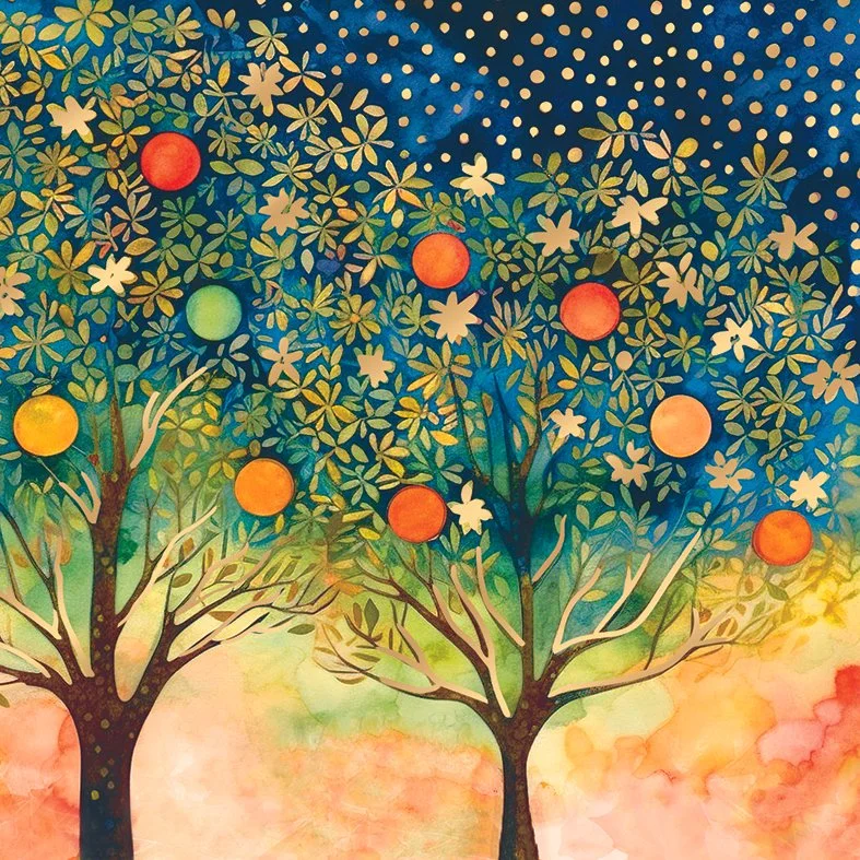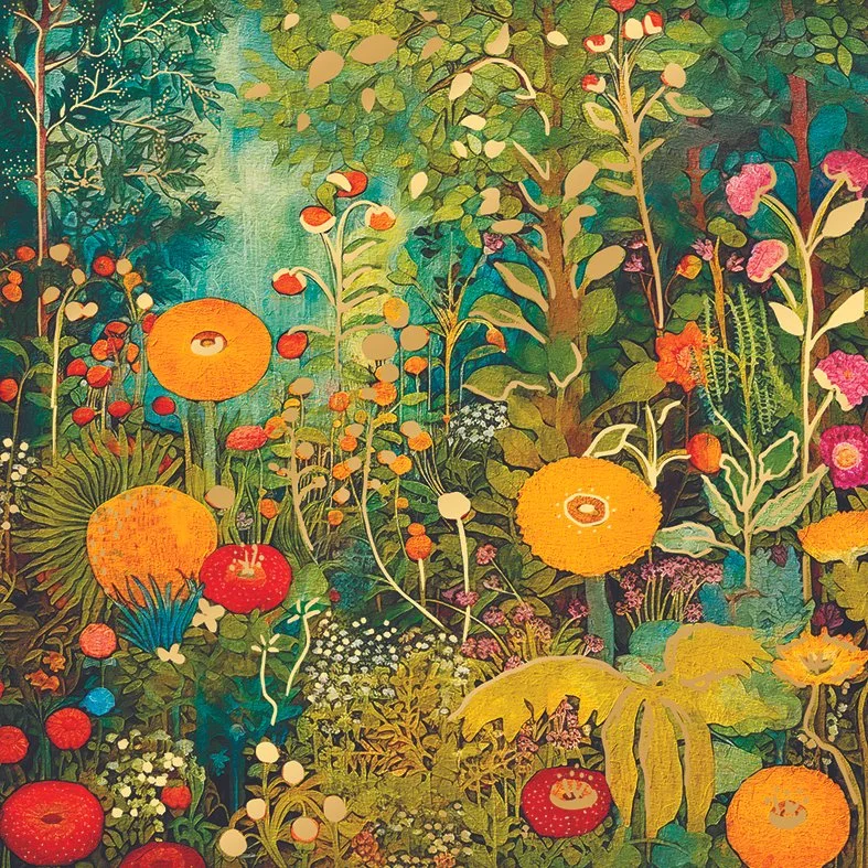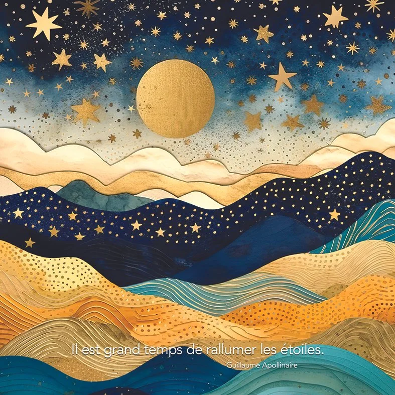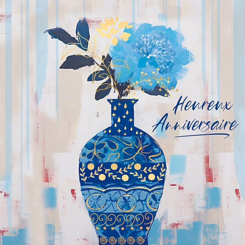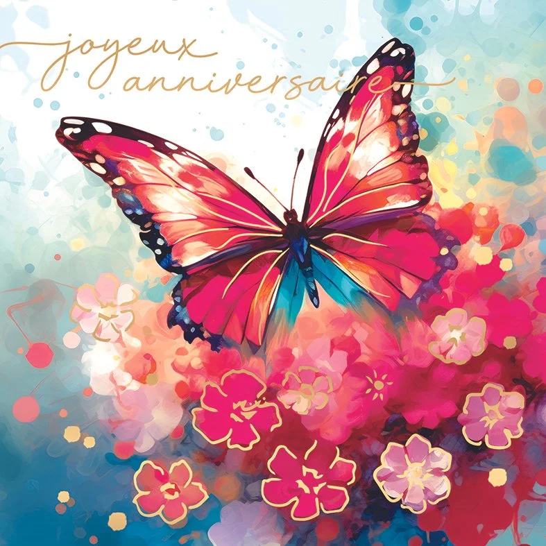 12.5 x 12.5 cm sans cello. Enveloppe dorée mat